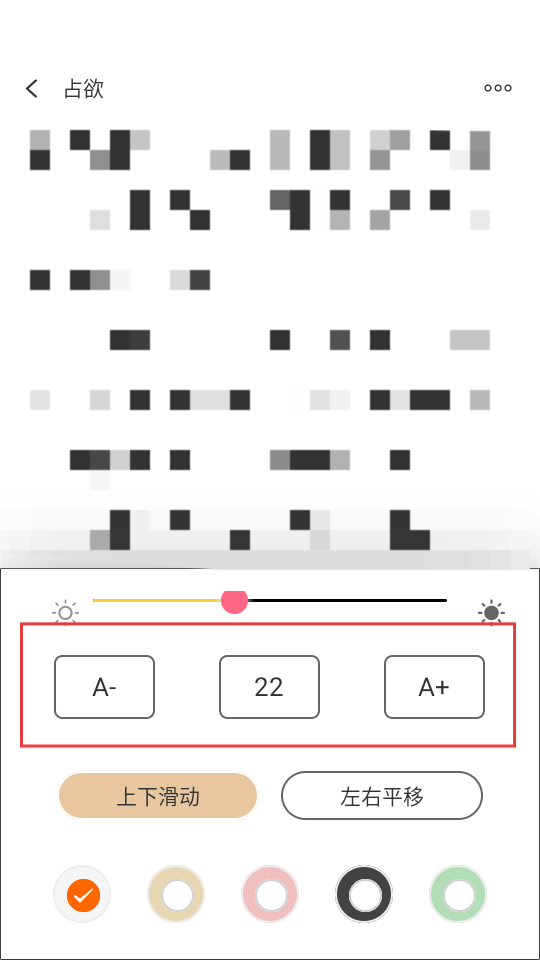 4、在设置里调整字号大小,选A-或A+来改变,找到最适合自己的阅读字号呀。