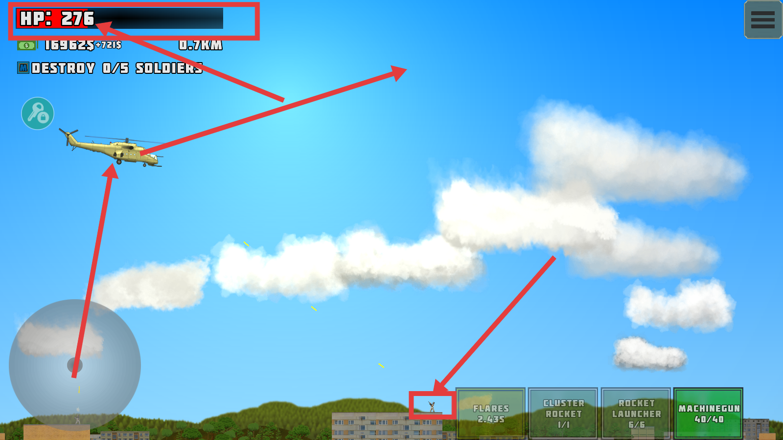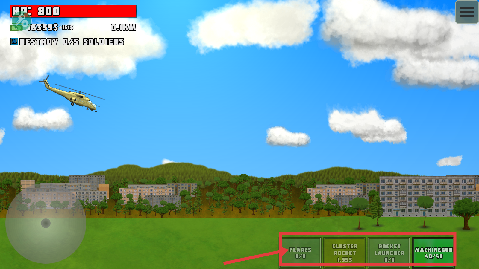 2、战斗中操控直升机,关注【HP-800】,合理运用【MACHINEGUN】等武器,推进距离并完成【DESTROY0/5SOLDIERS】任务。