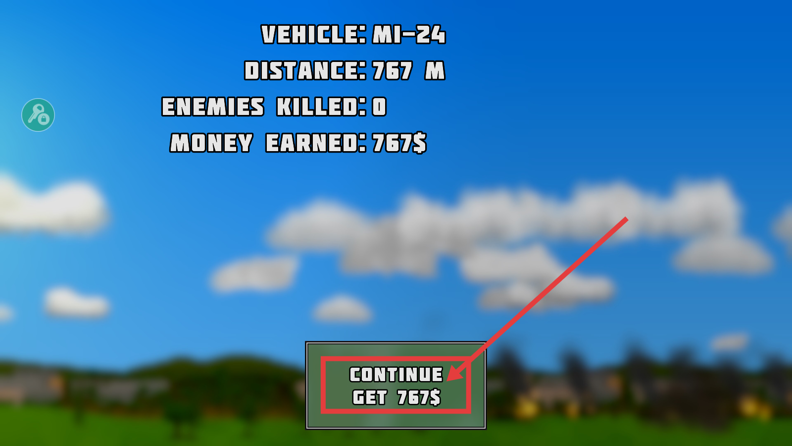 4、战斗结束后点击【CONTINUE】领取【MONEYEARNED-767$】,积累的金钱可用于直升机升级或解锁新装备。