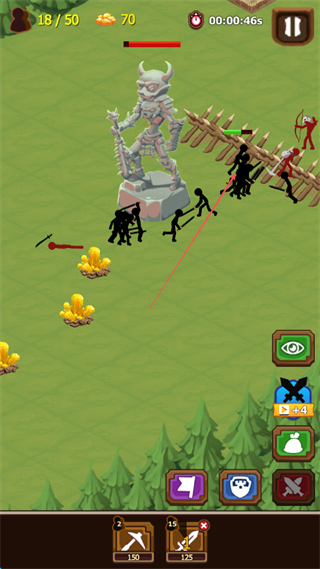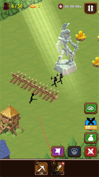 2、指挥火柴人士兵在战场移动,利用栅栏等地形,攻击敌方单位,同时采集资源。