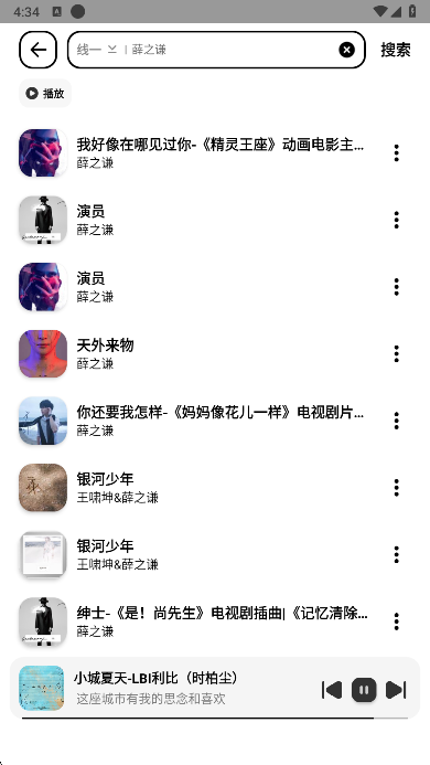 2、点击顶部的搜索框还能够对音乐进行查找