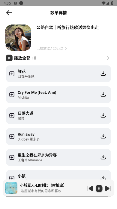 3、选择喜欢的歌单后会获得大量的音乐