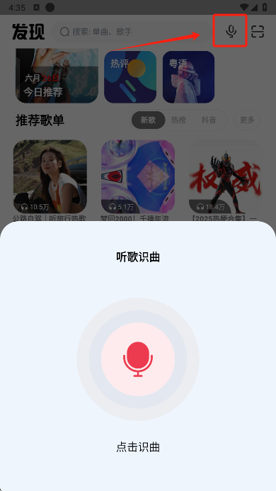6、点击语音的图标还可以进行听歌识曲哦