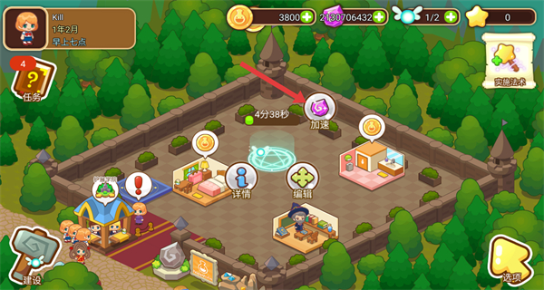 4、课程建筑启动后,可点击加速按钮,缩短建造时间。