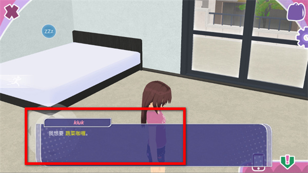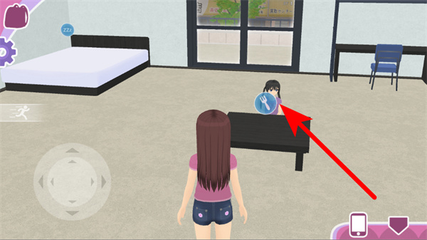 1、在游戏场景中,关注女友的需求图标,如食物图标,及时满足其需求可提升好感度。