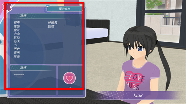 2、点击右下角爱心图标,可查看女友的喜好、偏好地点等信息,根据这些信息安排活动能有效提升好感。