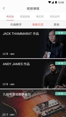 3、系统对不同吉他课程进行分类,用户可以在平台选择课程进行学习。