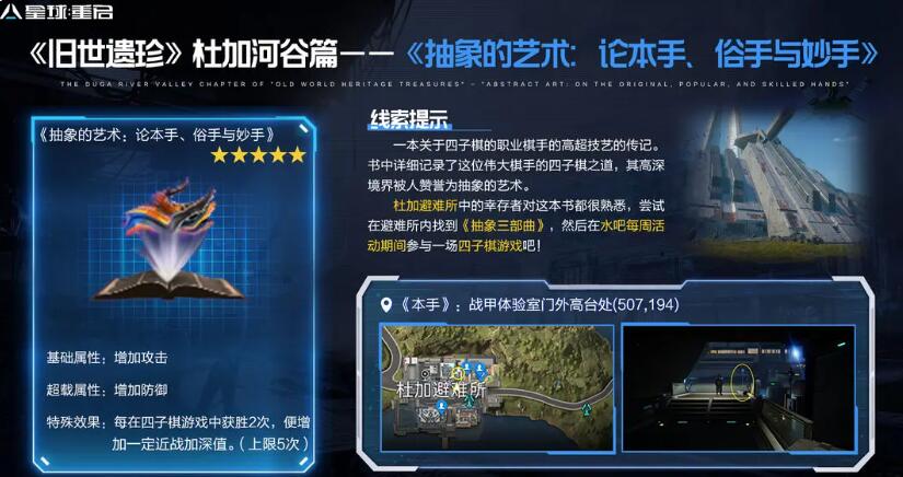 先去到不同的地方获得本手、俗手和妙手,然后在周二的20:00-21:00期间参加休憩时光,在杜加避难所水吧和四子棋对话获得。