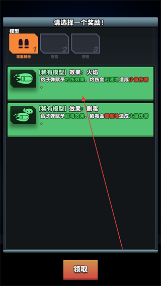3、选择奖励如火焰子弹,提升武器效果,增强对敌人的伤害能力。