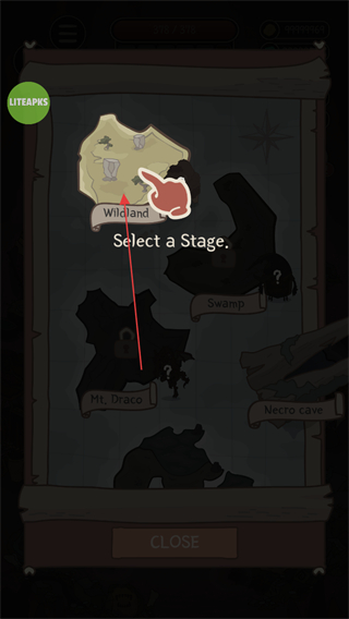 1、在地图界面选择关卡如Wildland,进入对应场景开始冒险。