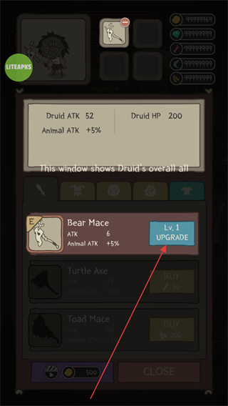 4、升级装备如BearMace,提升攻击属性,增强驯兽师的战斗能力,为后续冒险做准备。