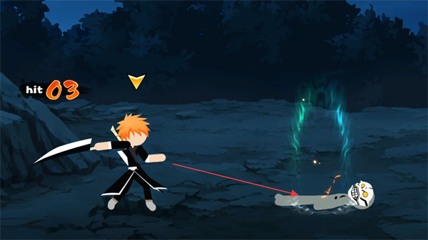 1、通过左侧虚拟摇杆控制角色移动,右侧技能按钮发动攻击,连击敌人积累hit数,消耗敌方血量。