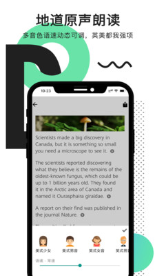 3、朗读过程有多种音色,语速可动态调整,有英美发音,在这里学习体验感受非常的出色。