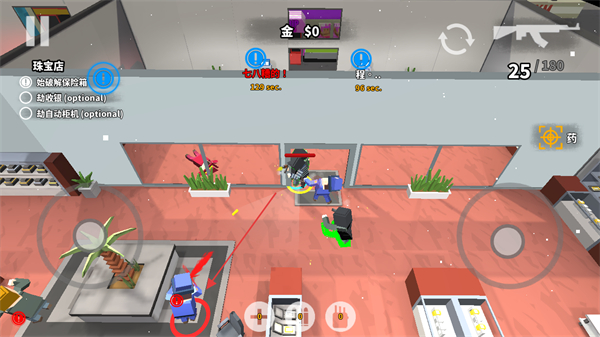 每个抢劫任务都有清晰的核心目标,优先开启保险箱获取物资,同时规避警察巡逻与攻击,目标导向性强,让行动更具规划性与沉浸感。