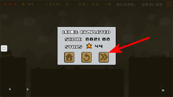 4、游戏关卡完成后,我们需要点击带有双箭头的按钮,可进入下一关继续游戏,这是持续挑战新关卡的关键操作。