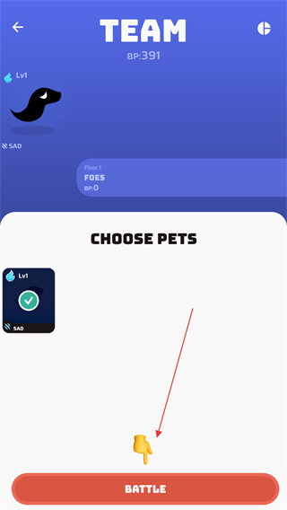 2、在宠物选择界面,选好宠物后点击BATTLE按钮。