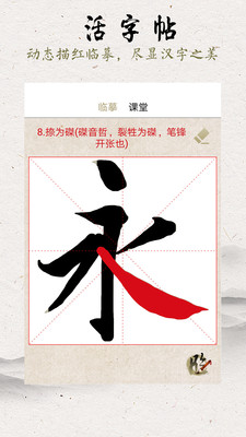 3、活字学习:提供观看课堂,动态临摹,帮助用户及时的发现自己的问题让你操作。