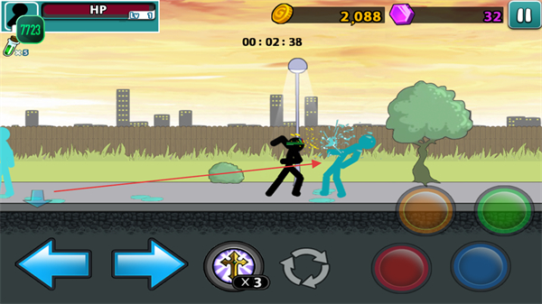 3、在途中会遭遇蓝色敌人,利用攻击按钮与其战斗,消灭敌人推进任务。