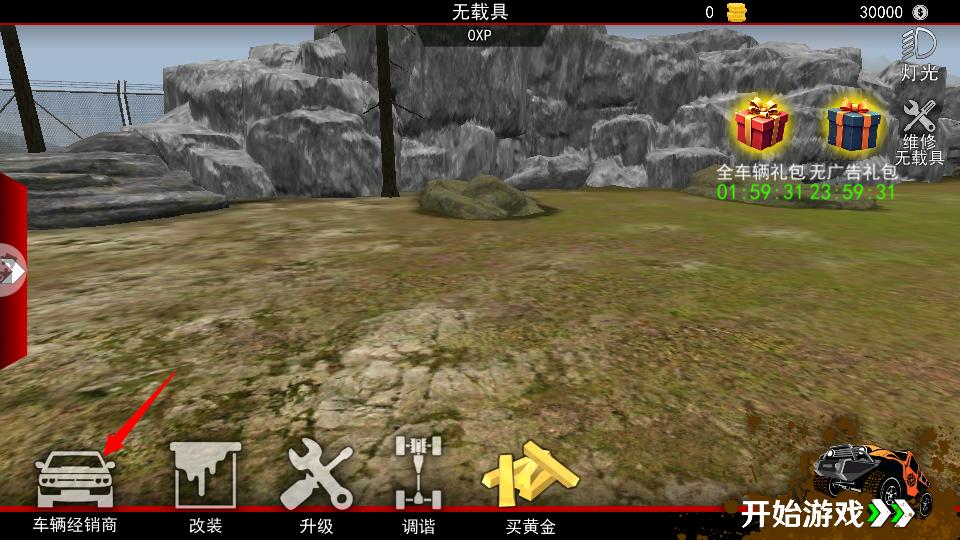 1.从车库挑选适合当前地形的越野车辆,不同车型具备独特的性能参数。