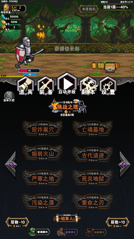 寻宝地下城是一款集冒险、策略与解谜为一体的肉鸽游戏,玩家将进入一个由随机生成的地下城,体验前所未有的探索和战斗之旅。每一次的冒险都是一次全新的挑战,地下城中的关卡、敌人和宝藏都将随着每次进入而改变,这使得每一场探险都充满了未知和刺激。地下城中隐藏的谜题和机关也要求玩家动脑筋,通过解锁各种秘密,逐步深入到更危险、更富挑战性的区域。