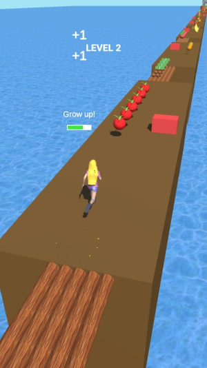 3、然后,收集赛道上的增益道具让角色“Grow”变大,轻松撞开障碍并冲过终点。