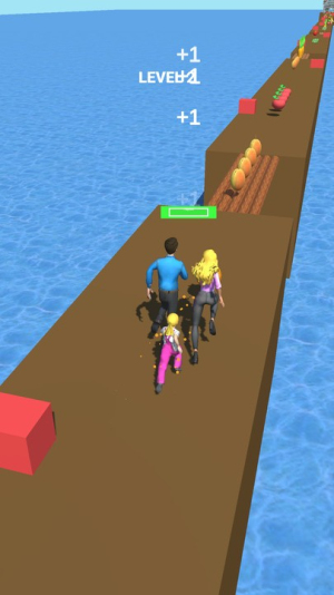2、操控角色跑酷:灵活控制角色在赛道移动,途中寻找并召集家人,逐步组建家庭队伍,提升团队闯关能力。