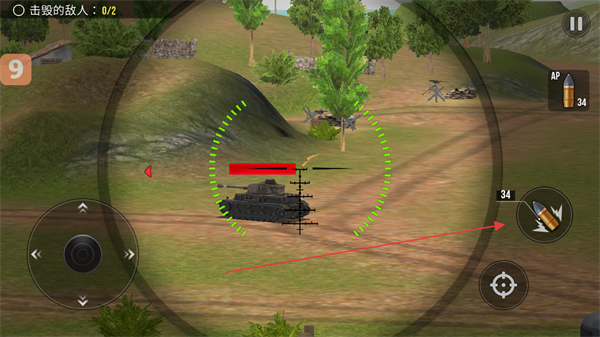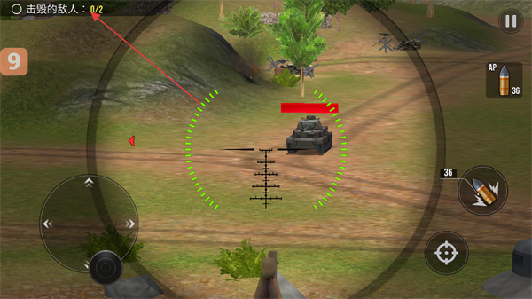 1、瞄准敌方坦克,根据击毁的敌人计数,明确需消灭的目标数量,发起攻击。