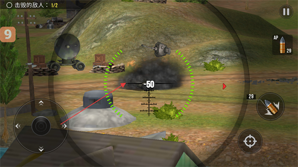 3、消灭一辆敌方坦克后,继续搜寻剩余目标,确保完成击毁的敌人任务要求。