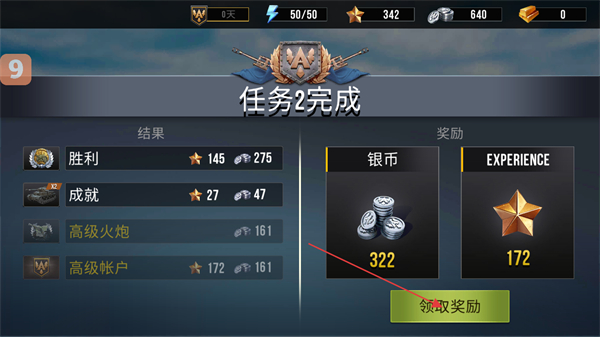 4、完成任务后,点击领取奖励,获取银币和经验,提升火炮战力,继续挑战新任务。