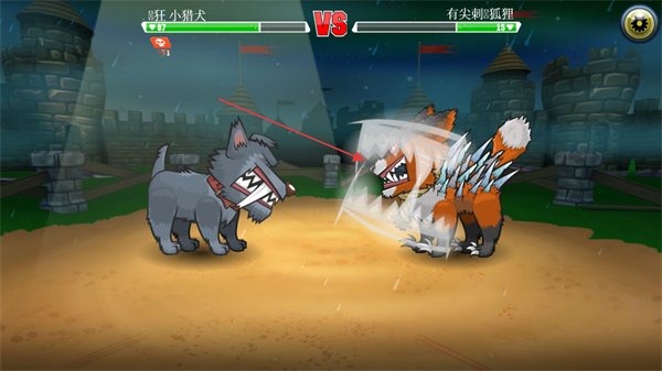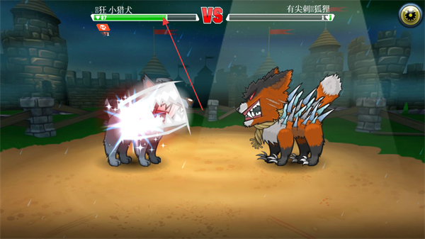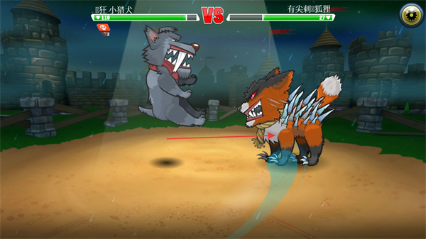 1、操控疯狂小猎犬与有尖刺狐狸对战,选择下方攻击技能,准备发起进攻。
