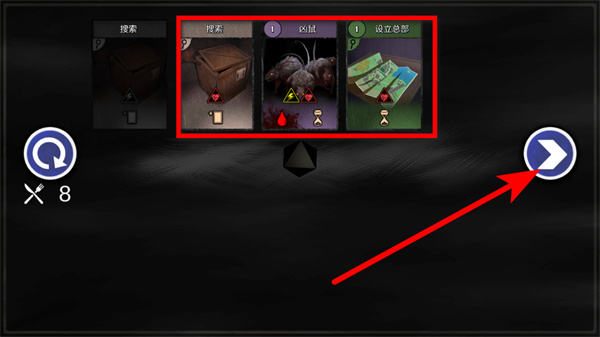 核心操作围绕卡牌使用、资源收集和角色调配展开,流程简单清晰,无需复杂操作技巧,专注于生存策略规划,新手也能快速适应。