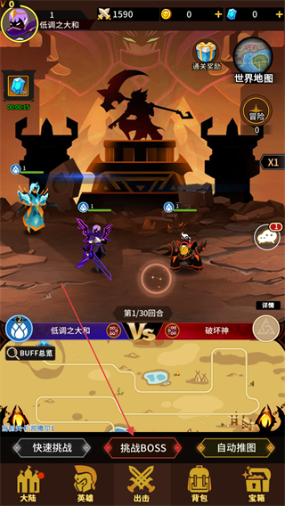 1、点击挑战BOSS,进入与破坏神的战斗。