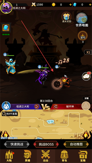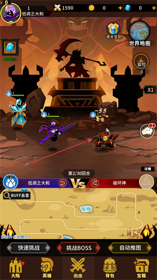 2、操控英雄移动,发起攻击,与破坏神展开回合制战斗。