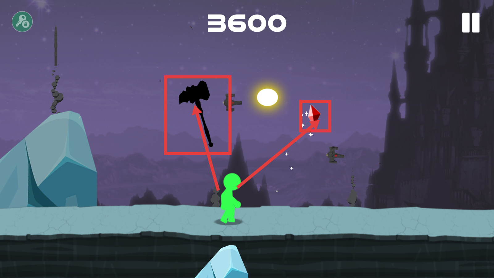 4、探索场景时收集黑色武器和红色钻石等道具,助力战斗,同时积累高分(如3600),提升游戏表现。