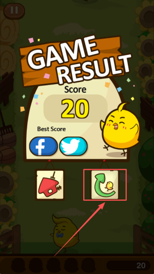 4、最后,在GAME RESULT界面若Score与BestScore均显示20,点击屏幕任意处即可马上重玩,冲击更高纪录。