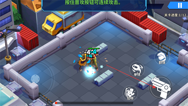 4、按住普攻按钮连续攻击敌人,快速消灭敌人,完成关卡。