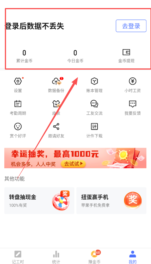4、软件还提供赚金币功能,你可以通过每日签到或参与转盘抽奖等活动获取金币,金币能提现或用于其他奖励。