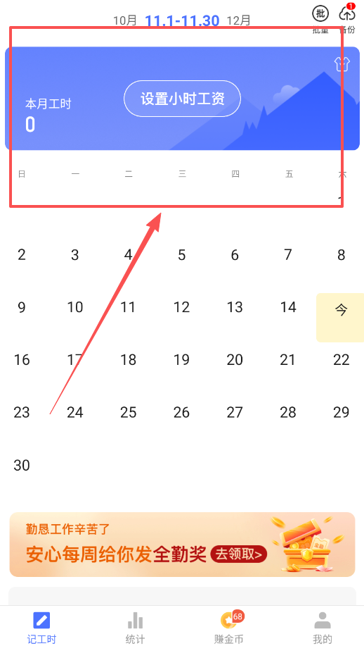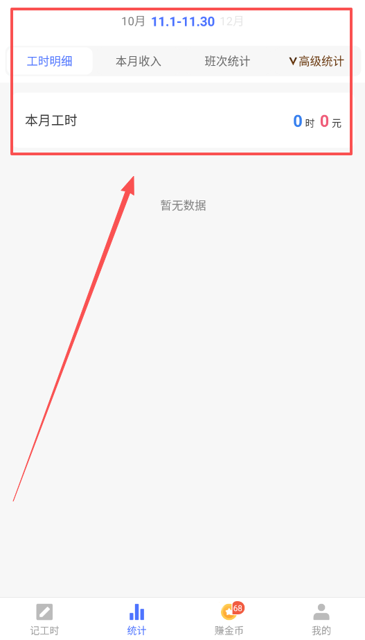 3、转到统计页面,你能查看本月工时明细和收入汇总,这里会显示你的总工时和对应工资,帮助了解自己的工作模式。
