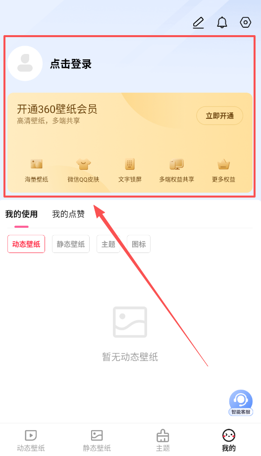 1、首先点击登录开通360壁纸会员,开通后可以享受高清壁纸多端共享的权益,接着浏览海量壁纸库。
