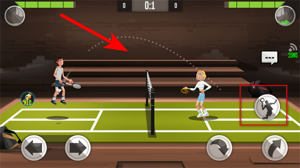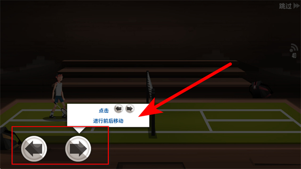 2、在游戏中,可通过点击左下角的左右箭头按钮,控制角色进行前后移动,调整击球位置。