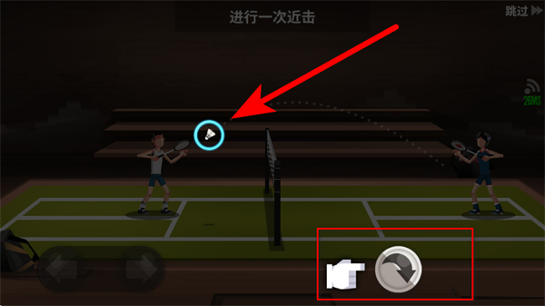 3、当羽毛球处于可击打范围时,点击相应的击球按钮如近击按钮,可进行击球操作,不同的击球按钮对应不同的击球方式。