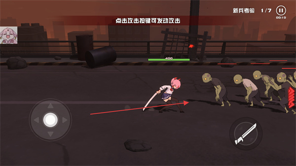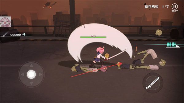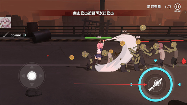 4、持续攻击僵尸,完成连击,消灭所有敌人后继续前进,完成关卡。