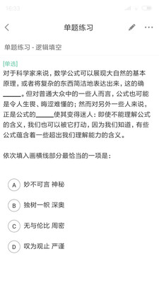 2、用户可以在练习的时候随意切换,给你更多的练习方法,公考的教学辅导非常好。