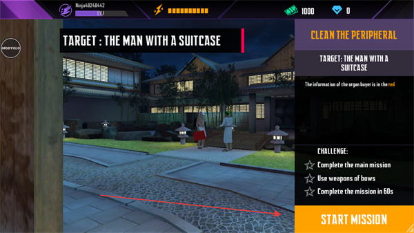 1、点击STARTMISSION开始任务,目标是消灭携带手提箱的人。