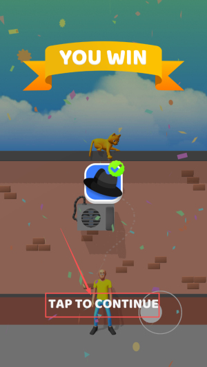 4、屏幕显示「YOU WIN」时,点击「TAP TO CONTINUE」进入下一关。