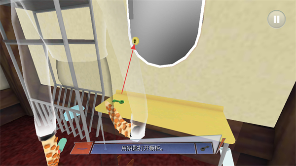 4、将钥匙插入橱柜锁孔,打开橱柜,推进游戏进程。