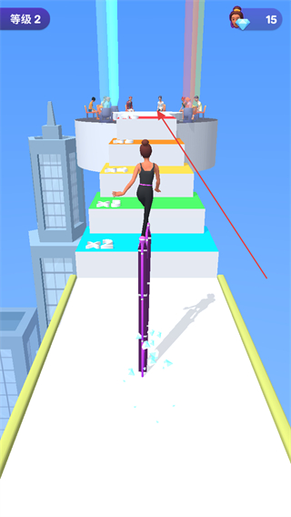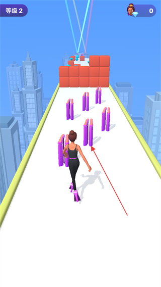 1、在等级2跑道上收集紫色鞋跟,增加高跟鞋高度,为后续挑战做准备。