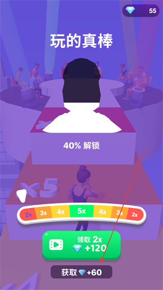 4、通关后领取钻石奖励,可选择观看广告翻倍奖励,解锁更多内容。