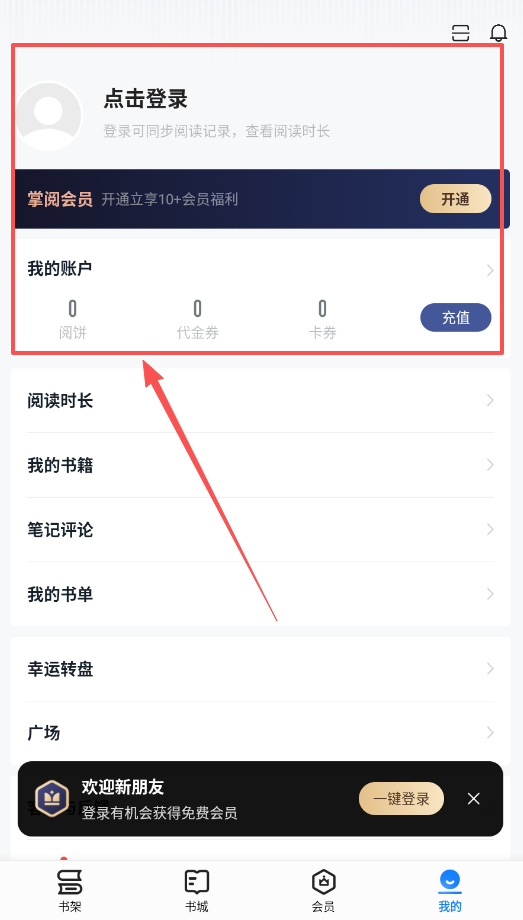 3、想要获得更多阅读权益和免费书籍的话,开通掌阅会员,开通后可以免费阅读超35万册图书、每月领50元购书券等多项专属福利呢。