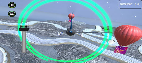 3、飞行中穿过绿色圆环检查点,留意【CHECKPOINT-6/8】进度,逐步完成所有检查点。